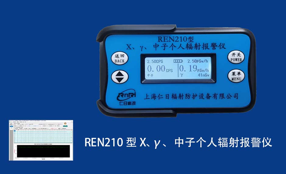 REN210型X、γ、中子個(gè)人輻射報(bào)警儀內(nèi)置SiPM和鋰玻璃晶體組成中子探測器儀器,采用反照率方式探測中子射線,同時(shí)也能探測X、γ射線。因此它可同事監(jiān)檢測X、γ、中子三種射線。能顯示工作場所的劑量當(dāng)量率和累積劑量,更換電池時(shí),日期及累積數(shù)據(jù)能永久保存。可選配RenRiPersonal個(gè)人劑量管理軟件,該軟件可存儲多個(gè)人的歷史數(shù)據(jù),能記錄日累積、月累積、年累積、輻照時(shí)長、計(jì)算平均劑量率、扣除或不扣除本底輻射,且以文字和圖譜的方式展現(xiàn)數(shù)據(jù)。廣泛應(yīng)用于環(huán)保、化工、水泥、煤礦、土木工程、石油、醫(yī)院、疾控、進(jìn)出口商檢、核電、加速器、機(jī)場、中子源庫和其他安檢、邊境控制海關(guān)檢測等